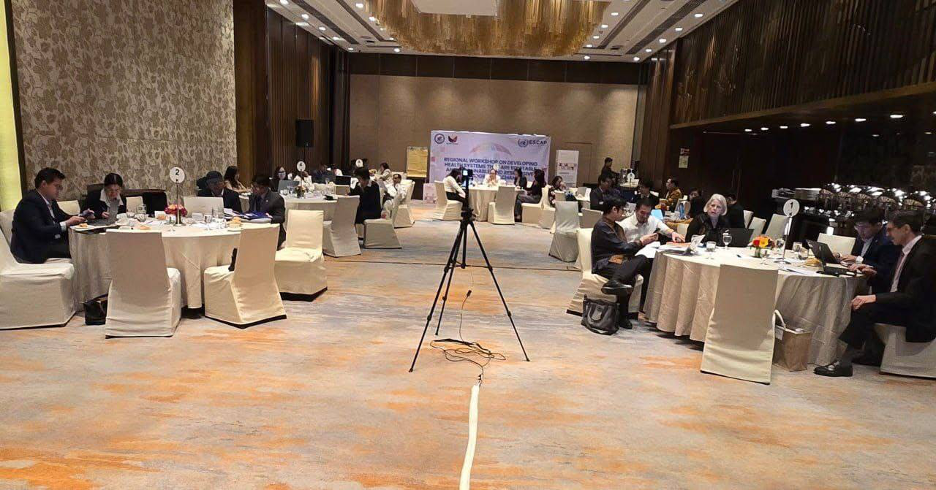 សូមបញ្ជាក់ជូនថា សិក្ខាសាលានេះរៀបចំឡើងដោយ គណៈកម្មការសេដ្ឋកិច្ចនិងសង្គមសម្រាប់អាស៊ី និងប៉ាស៊ីហ្វិក (UN-ESCAP) ក្នុងគោលបំណងជំរុញកិច្ចពិភាក្សាស្តីពីការពង្រឹងប្រព័ន្ធសុខាភិបាល ការដោះស្រាយកត្តាសង្គមដែលកំណត់សុខភាព និងការពន្លឿនវឌ្ឍនភាពនៃការទទួលបានសេវាសុខភាពសម្រាប់ប្រជាជនងាយរងគ្រោះនៅក្នុងតំបន់។ ក្នុងនោះ សមាសភាពគណៈប្រតិភូកម្ពុជា ដែលអញ្ជើញចូលរួមមាន លោកស្រីបណ្ឌិត កើត ពេជ្រចិន្តា អគ្គលេខាធិការរងក្រុមប្រឹក្សាជាតិគាំពារសង្គម (អ.ក.គ) និង លោក អៀ សុធី ប្រធានអង្គភាពស្រាវជ្រាវ នៃ អ.ក.គ ព្រមទាំងមានការចូលរួមពីអ្នកបង្កើតគោលនយោបាយ និងអ្នកជំនាញមកពីប្រទេសជាច្រើនក្នុងតំបន់ ដូចជា បង់ក្លាដែស, ម៉ាល់ឌីវ, ស្រីលង្កា, ម៉ាឡេស៊ី, ថៃ និងចិន ។